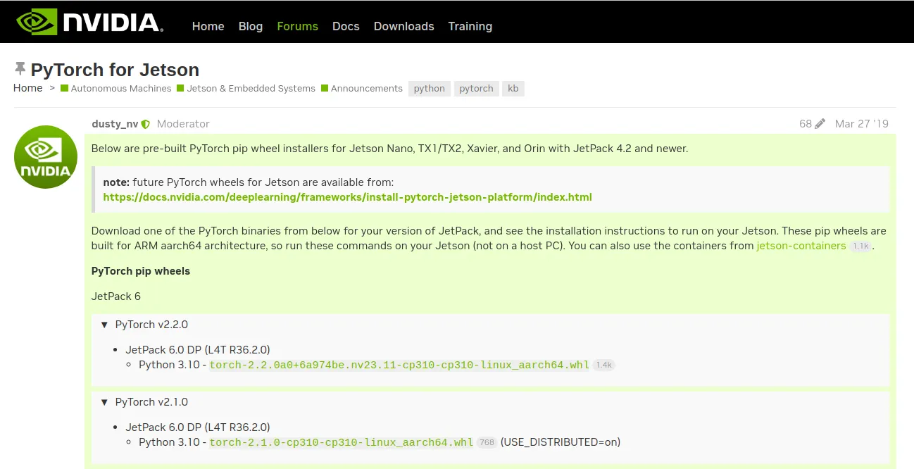 pip3 install numpy torch-2.2.0a0+6a974be.nv23.11-cp310-cp310-linux_aarch64.whl